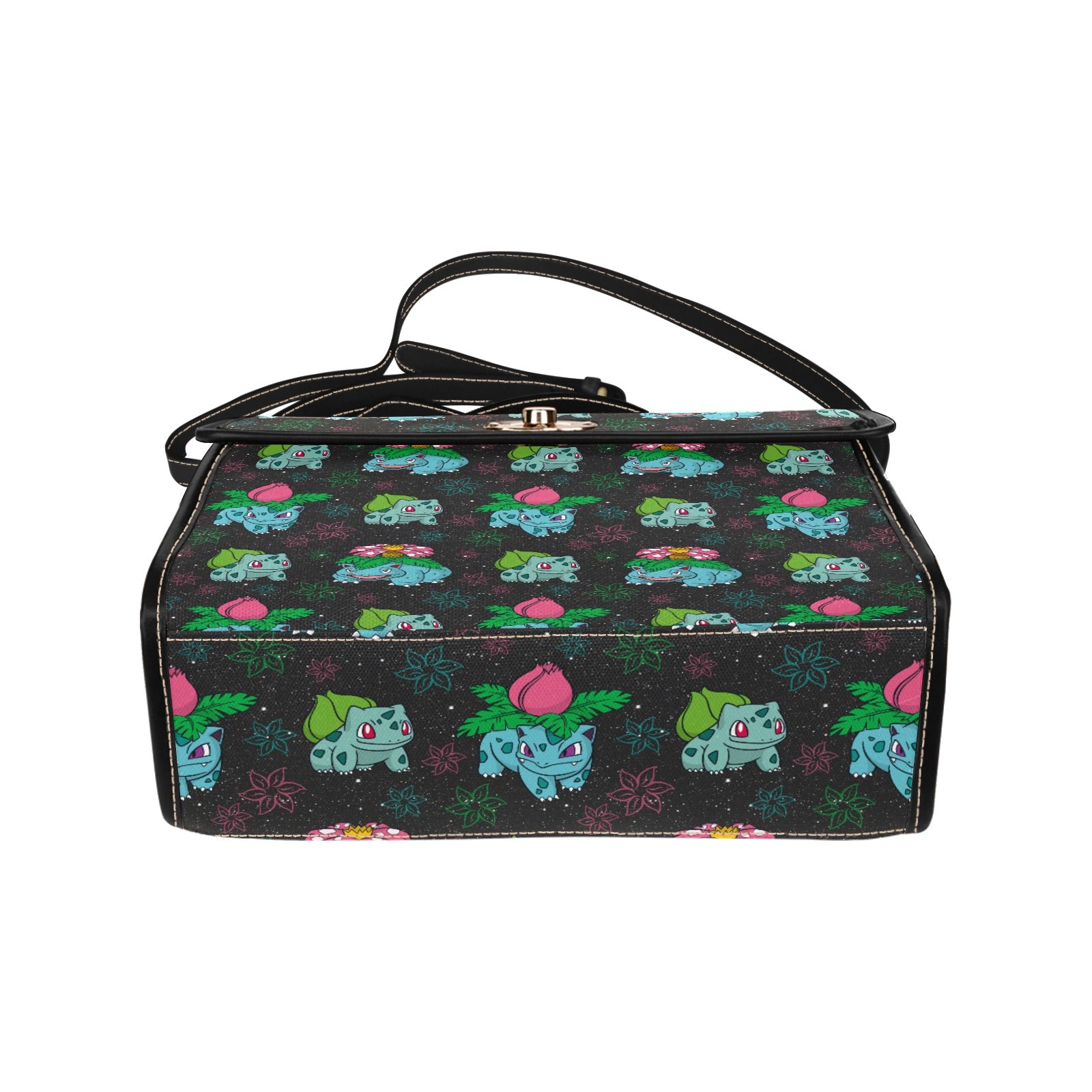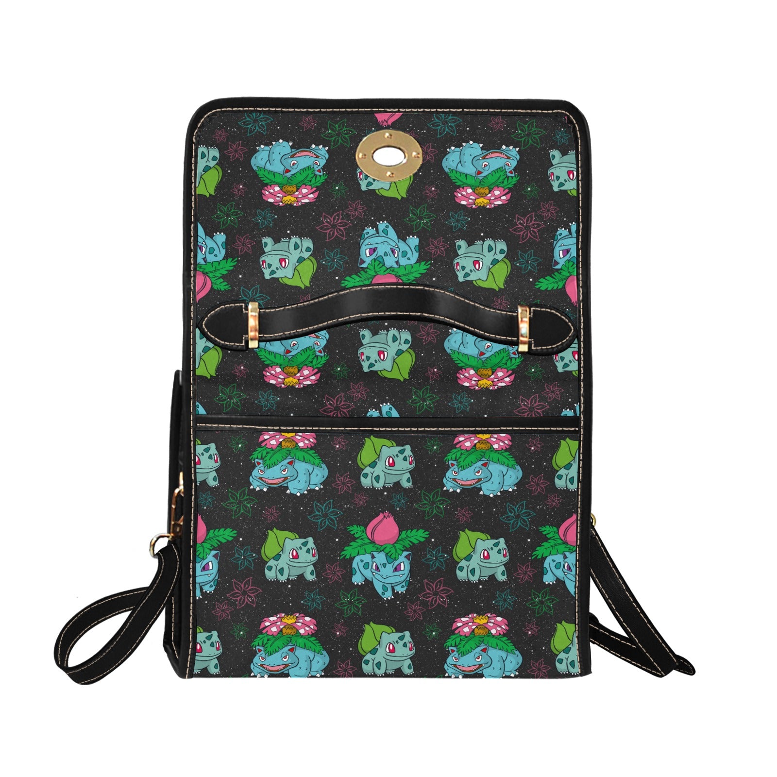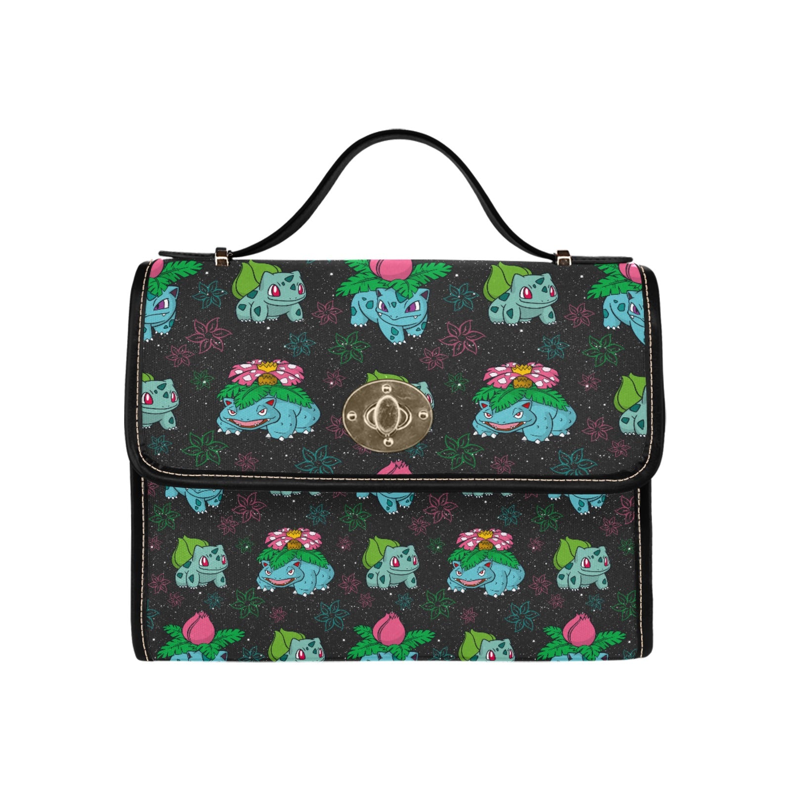 Level up your accessory game with this absolutely legendary handbag! ⭐ Featuring adorable grass-type creatures scattered across a sleek dark background, this bag is a proper homage to classic gaming nostalgia that'll have fellow fans doing double-takes.