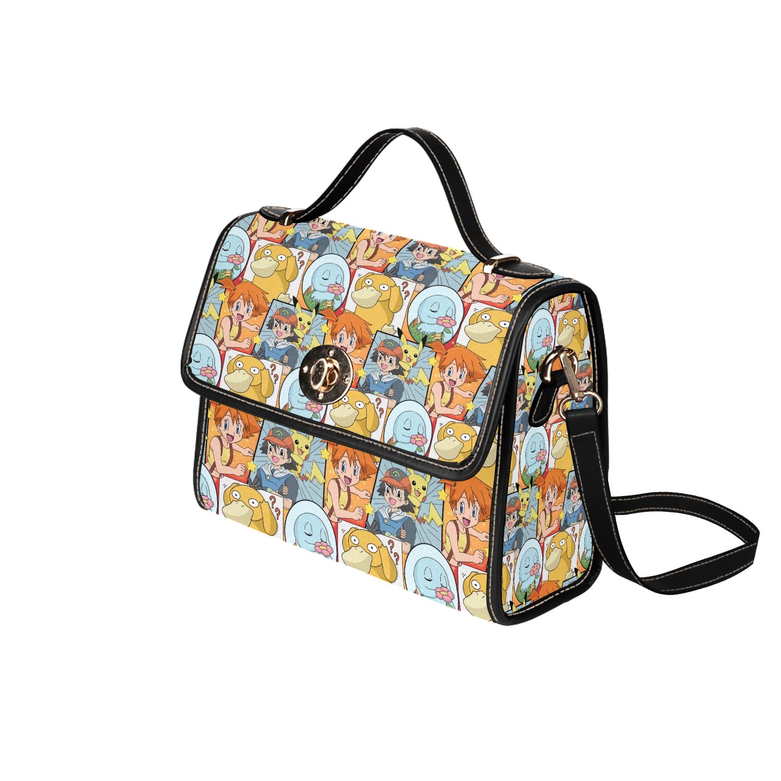 Pocket Monster Collage Handbag - Retro Gaming Anime Character Shoulder Bag
